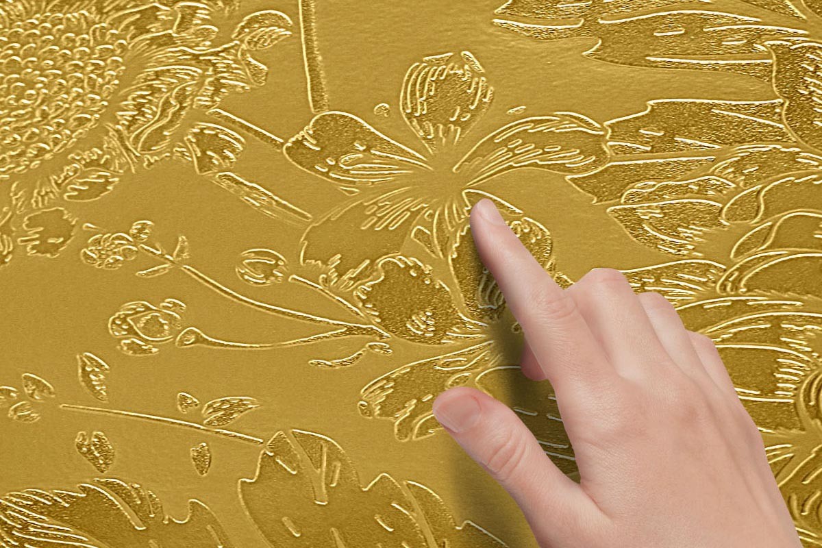 - Το ανάγλυφο δημιουργείται στη μη υφασμένη ταπετσαρία χρησιμοποιώντας τη διαδικασία ψηφιακής εκτύπωσης - σε έως τέσσερα επίπεδα, ύψους έως 1 mm.