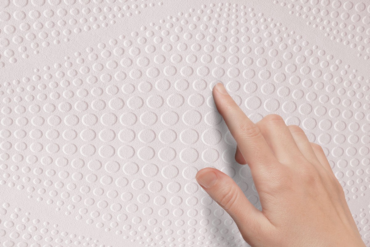 Αν θέλετε να τονίσετε τους τοίχους σας, μια γεωμετρική ταπετσαρία είναι πάντα η λύση! Και αν θέλετε να "απογειώσετε" το αποτέλεσμα, επιλέξτε την ταπετσαρία "Opti Dots Light Pink" με ανάγλυφα, εντυπωσιακά σχέδια σε απαλό ροζ  χρώμα!