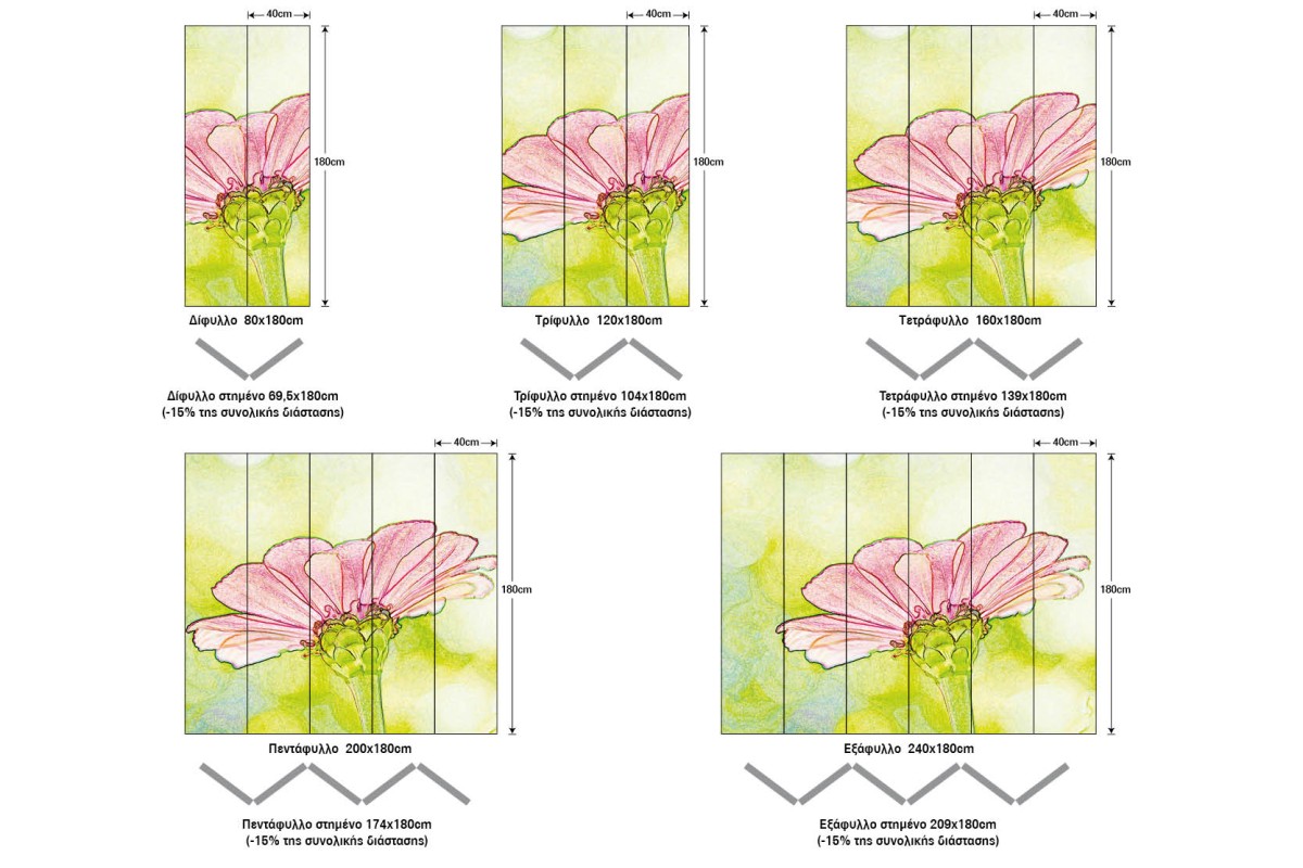 - Τα πλαϊνά των φύλλων του παραβάν είναι καλυμμένα με το θέμα για άριστο οπτικό αποτέλεσμα.