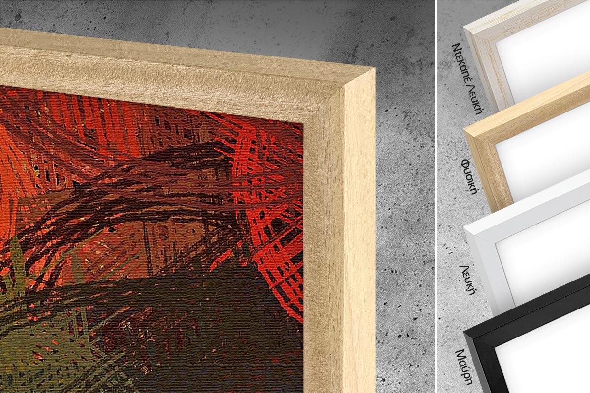 Όλες μας οι κορνίζες είναι ξύλινες χειροποίητες και ετοιμάζονται κατά παραγγελία σε άψογη συναρμογή με τον πίνακα σας!
