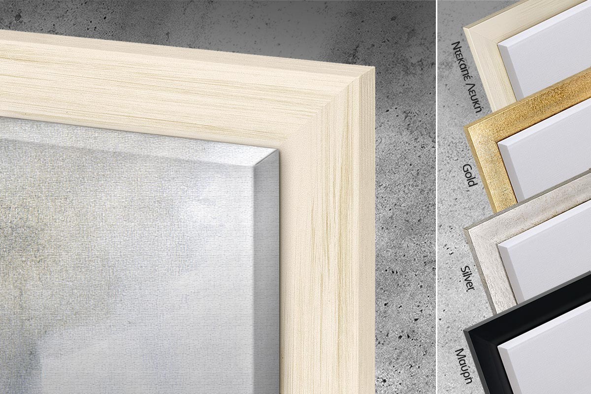 Μπορείτε να επιλέξετε ανάμεσα από 3 τύπους με 4 χρωματικές επιλογές ανά τύπο, Κλασική κορνίζα, κορνίζα Σκοτία και κορνίζα Πλάτη.