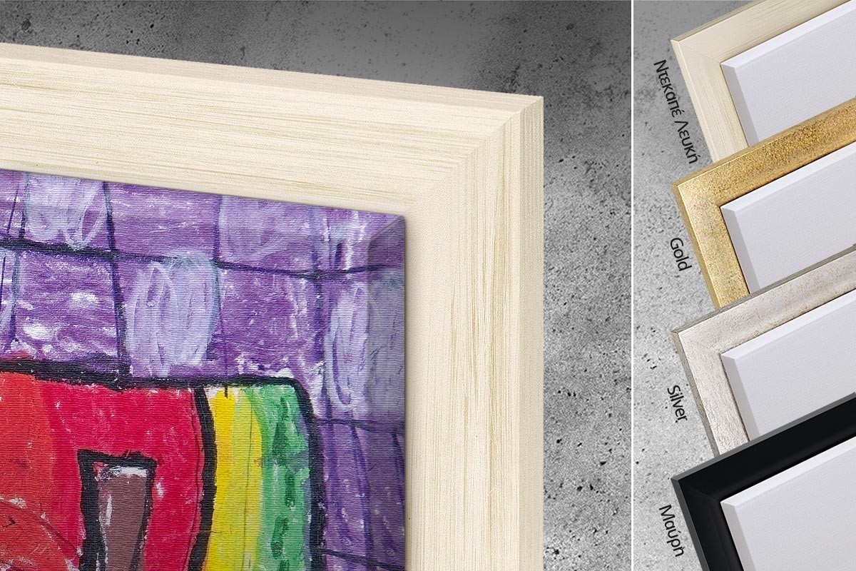 Όλες μας οι κορνίζες είναι ξύλινες χειροποίητες και ετοιμάζονται κατά παραγγελία σε άψογη συναρμογή με τον πίνακα σας!