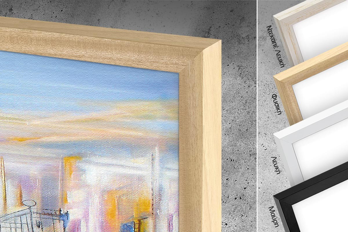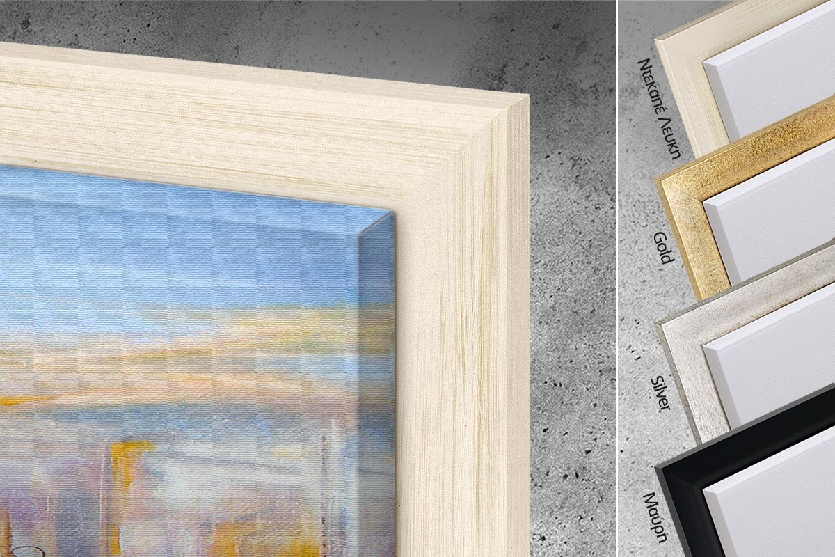 Όλες μας οι κορνίζες είναι ξύλινες χειροποίητες και ετοιμάζονται κατά παραγγελία σε άψογη συναρμογή με τον πίνακα σας!