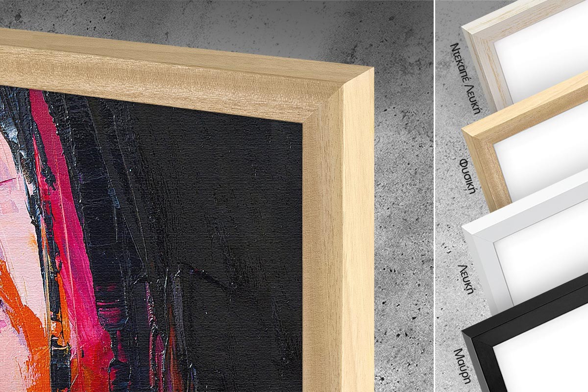 Όλες μας οι κορνίζες είναι ξύλινες χειροποίητες και ετοιμάζονται κατά παραγγελία σε άψογη συναρμογή με τον πίνακα σας!