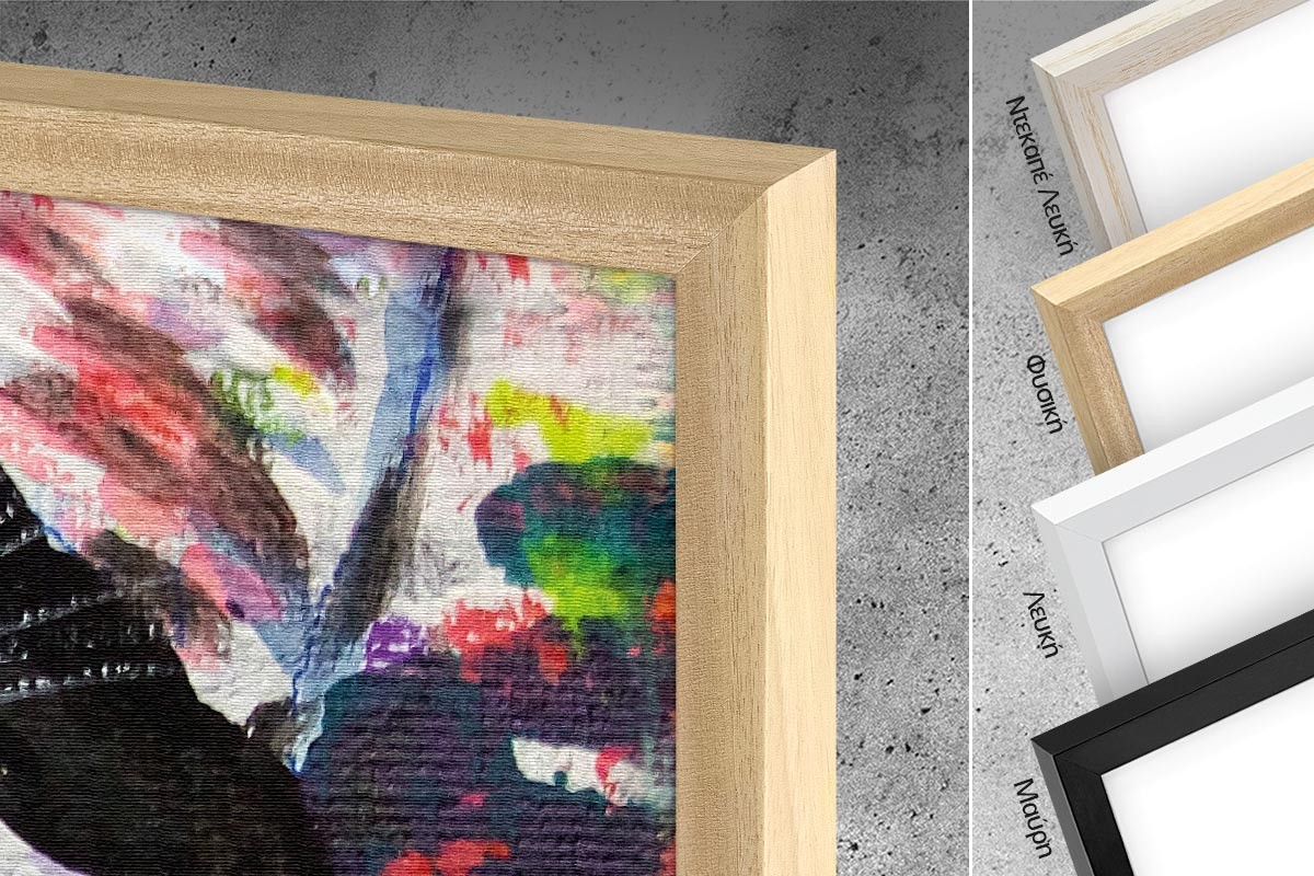 Όλες μας οι κορνίζες είναι ξύλινες χειροποίητες και ετοιμάζονται κατά παραγγελία σε άψογη συναρμογή με τον πίνακα σας!