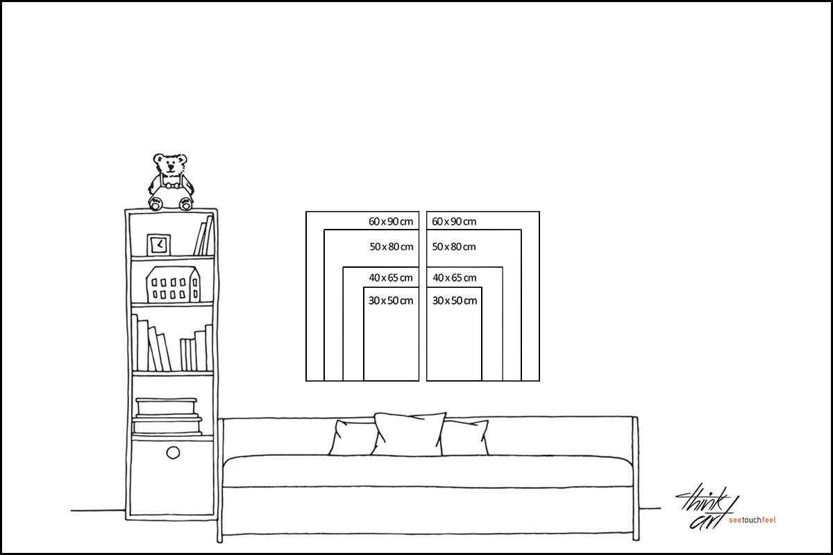 Κάθε πίνακας έχει άγκιστρο ήδη τοποθετημένο στο ξύλινο τελάρο για εύκολη ανάρτηση στον τοίχο. H ποσότητα των άγκιστρων εξαρτάται από το πλάτος του τελάρου.