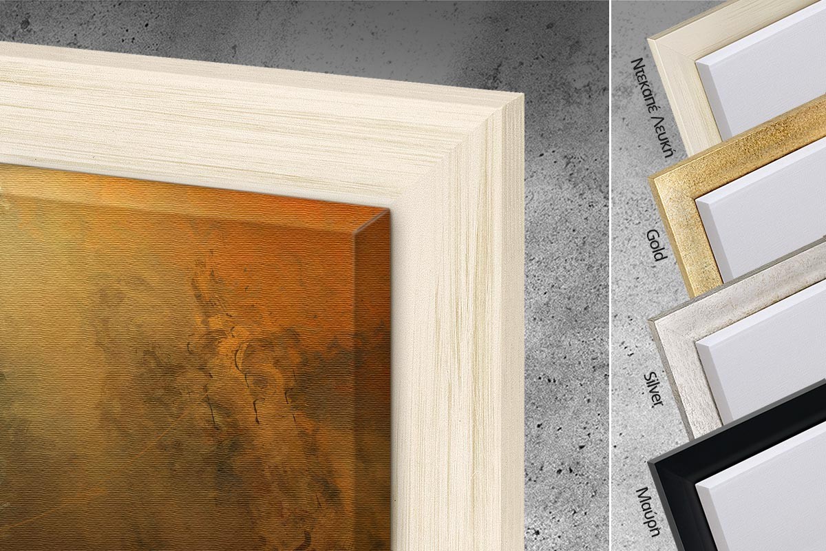 Όλες μας οι κορνίζες είναι ξύλινες χειροποίητες και ετοιμάζονται κατά παραγγελία σε άψογη συναρμογή με τον πίνακα σας!