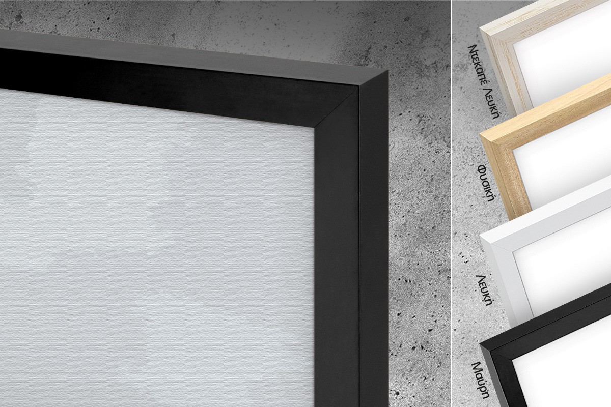 Μπορείτε να επιλέξετε ανάμεσα από 3 τύπους με 4 χρωματικές επιλογές ανά τύπο, Κλασική κορνίζα, κορνίζα Σκοτία και κορνίζα Πλάτη.