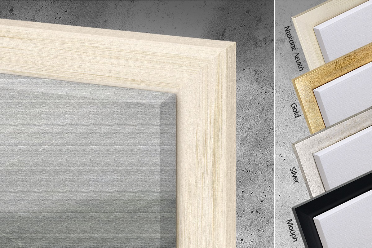 Μπορείτε να επιλέξετε ανάμεσα από 3 τύπους με 4 χρωματικές επιλογές ανά τύπο, Κλασική κορνίζα, κορνίζα Σκοτία και κορνίζα Πλάτη.