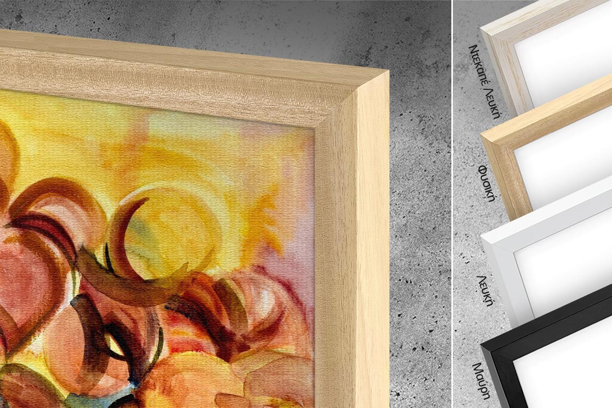 Όλες μας οι κορνίζες είναι ξύλινες χειροποίητες και ετοιμάζονται κατά παραγγελία σε άψογη συναρμογή με τον πίνακα σας!