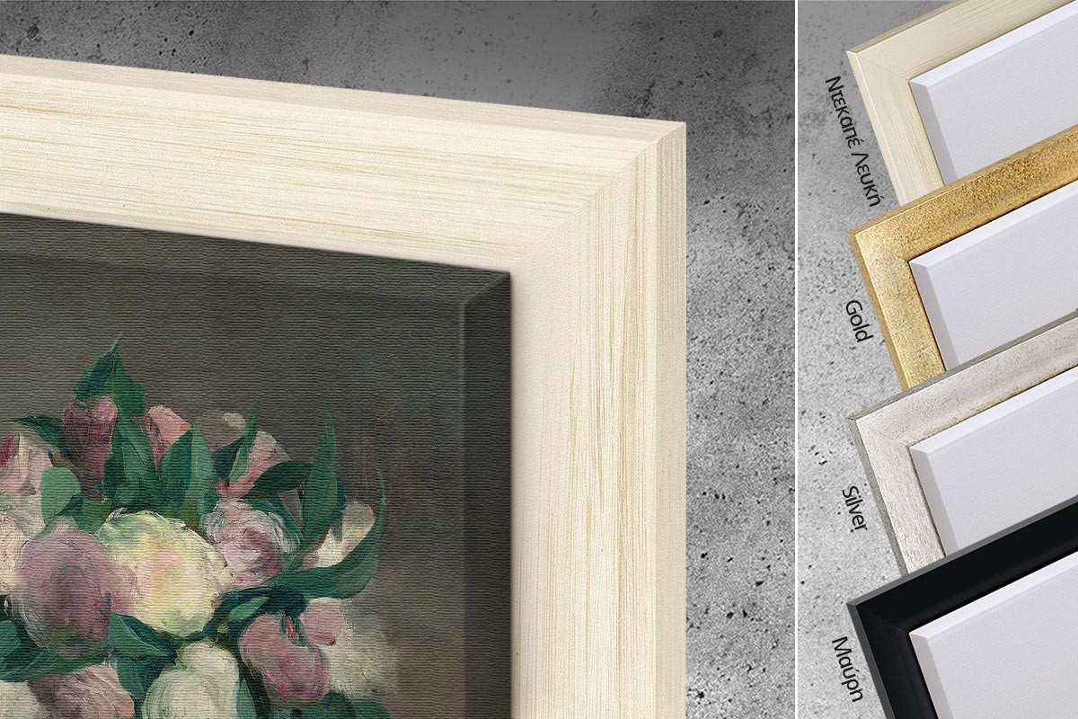 Μπορείτε να επιλέξετε ανάμεσα από 3 τύπους με 4 χρωματικές επιλογές ανά τύπο, Κλασική κορνίζα, κορνίζα Σκοτία και κορνίζα Πλάτη.