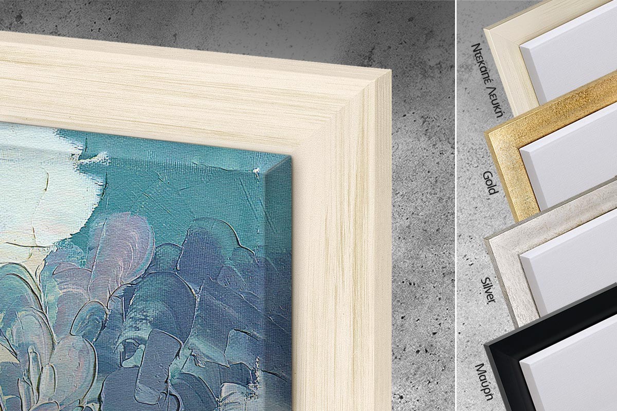 Όλες μας οι κορνίζες είναι ξύλινες χειροποίητες και ετοιμάζονται κατά παραγγελία σε άψογη συναρμογή με τον πίνακα σας!