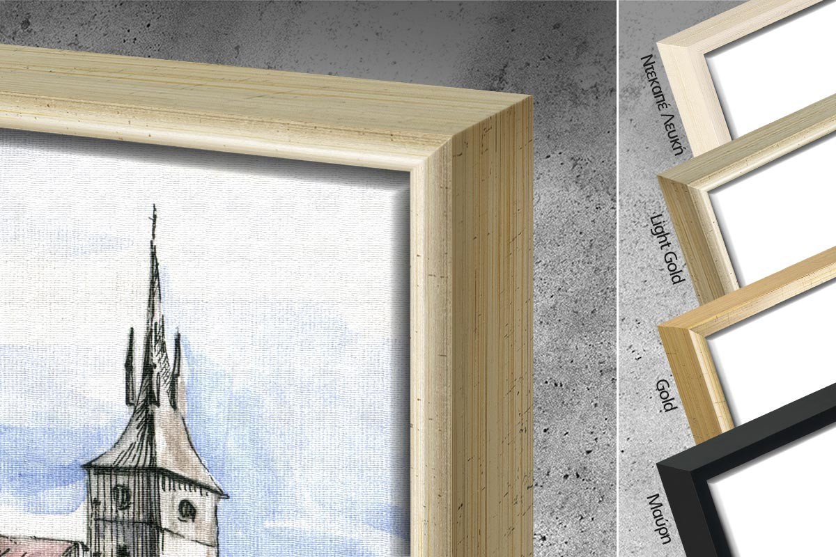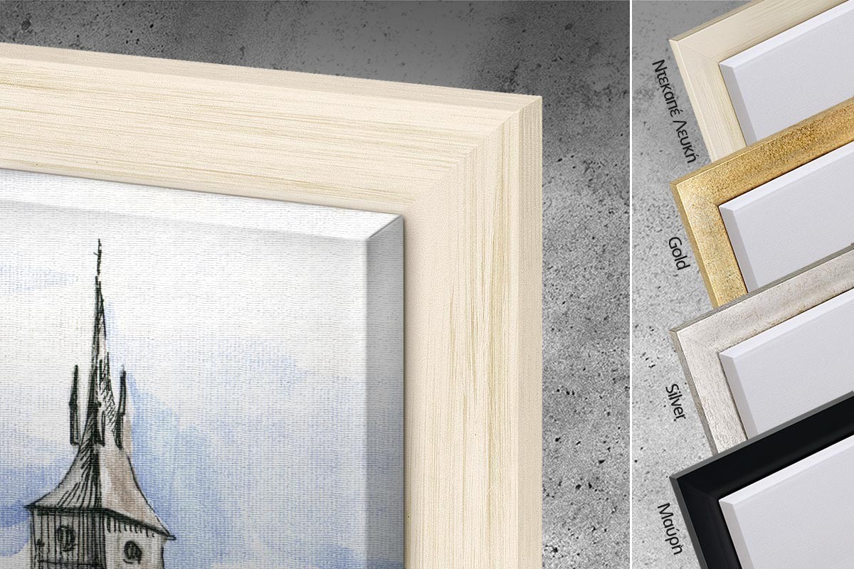 Μπορείτε να επιλέξετε ανάμεσα από 3 τύπους με 4 χρωματικές επιλογές ανά τύπο, Κλασική κορνίζα, κορνίζα Σκοτία και κορνίζα Πλάτη.