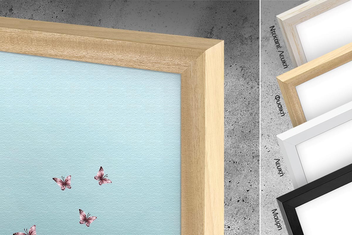 Μπορείτε να επιλέξετε ανάμεσα από 3 τύπους με 4 χρωματικές επιλογές ανά τύπο, Κλασική κορνίζα, κορνίζα Σκοτία και κορνίζα Πλάτη.