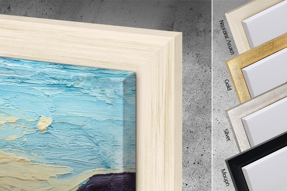 Όλες μας οι κορνίζες είναι ξύλινες χειροποίητες και ετοιμάζονται κατά παραγγελία σε άψογη συναρμογή με τον πίνακα σας!