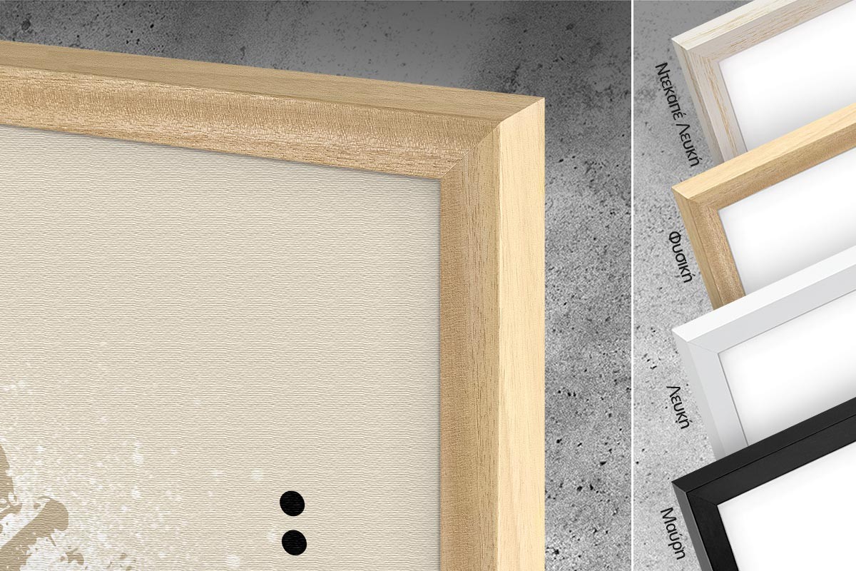 Όλες μας οι κορνίζες είναι ξύλινες χειροποίητες και ετοιμάζονται κατά παραγγελία σε άψογη συναρμογή με τον πίνακα σας!