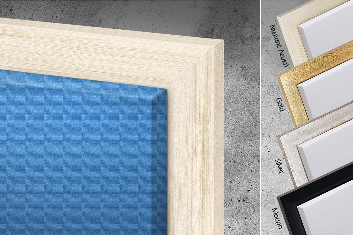 Μπορείτε να επιλέξετε ανάμεσα από 3 τύπους με 4 χρωματικές επιλογές ανά τύπο, Κλασική κορνίζα, κορνίζα Σκοτία και κορνίζα Πλάτη.