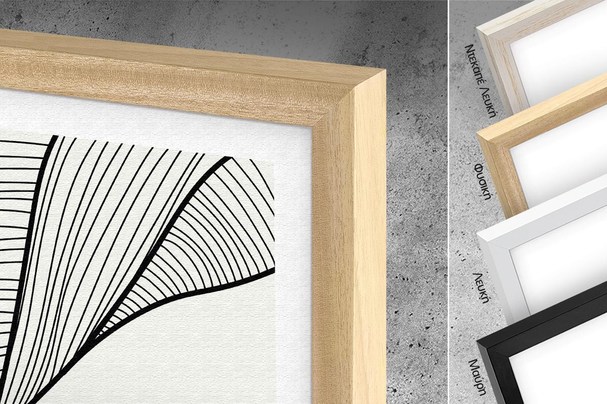 Μπορείτε να επιλέξετε ανάμεσα από 3 τύπους με 4 χρωματικές επιλογές ανά τύπο, Κλασική κορνίζα, κορνίζα Σκοτία και κορνίζα Πλάτη.