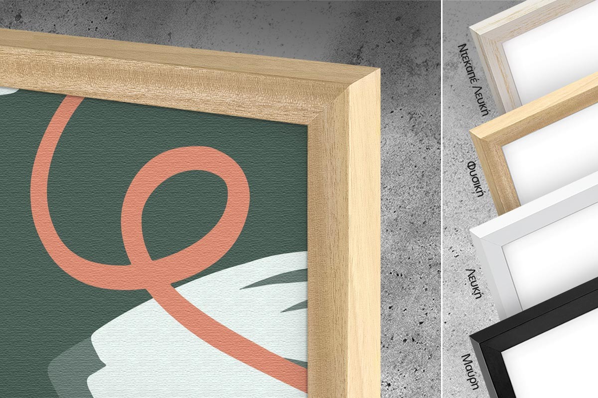 Μπορείτε να επιλέξετε ανάμεσα από 3 τύπους με 4 χρωματικές επιλογές ανά τύπο, Κλασική κορνίζα, κορνίζα Σκοτία και κορνίζα Πλάτη.