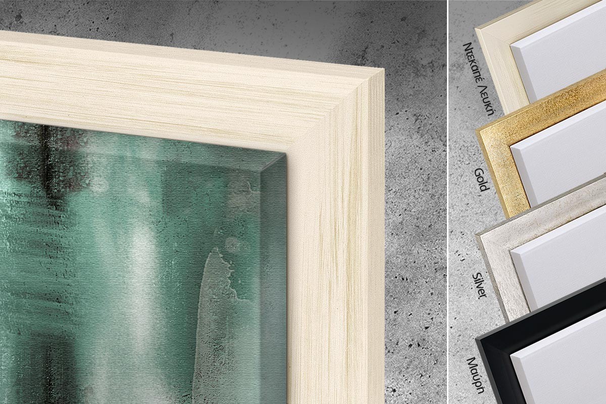 Μπορείτε να επιλέξετε ανάμεσα από 3 τύπους με 4 χρωματικές επιλογές ανά τύπο, Κλασική κορνίζα, κορνίζα Σκοτία και κορνίζα Πλάτη.
