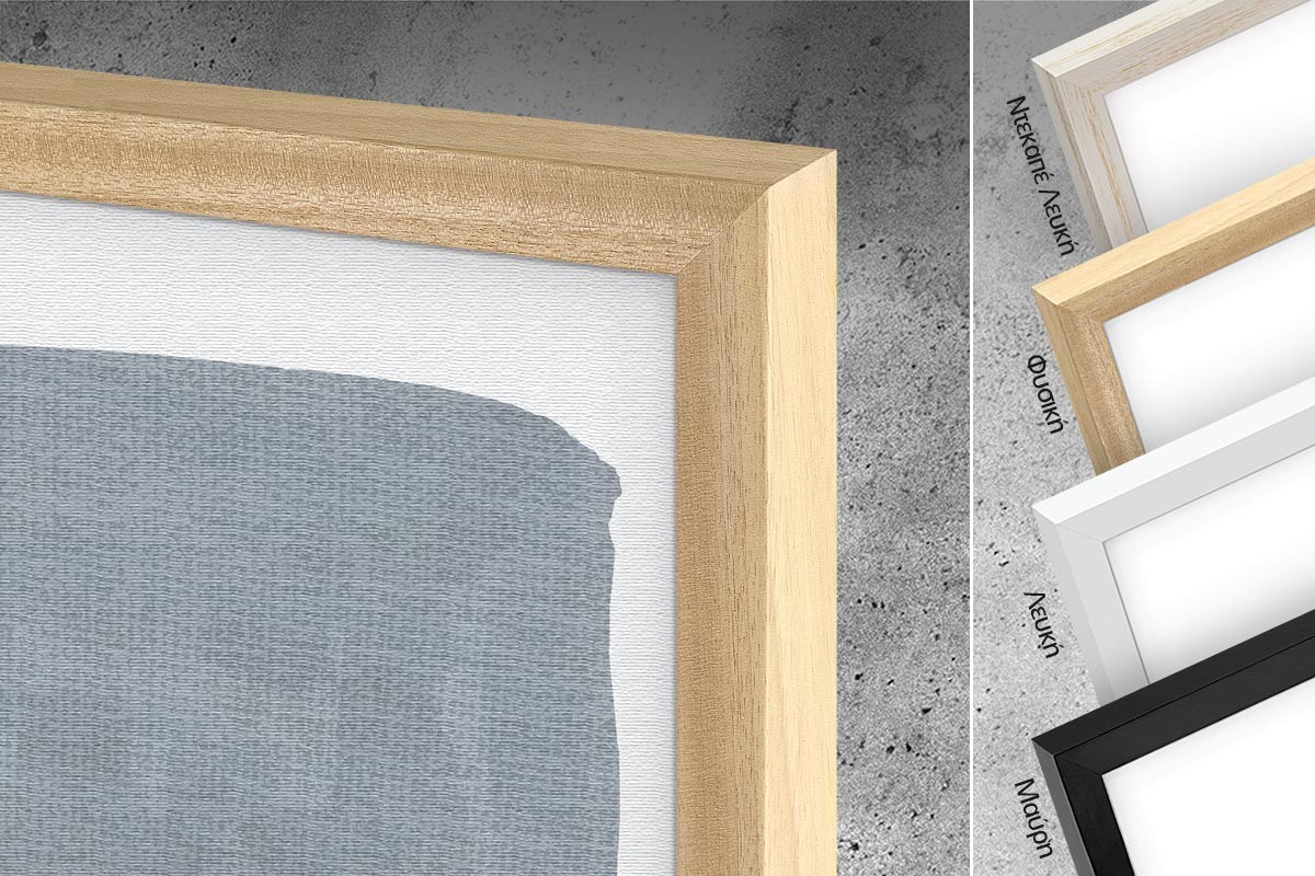 Μπορείτε να επιλέξετε ανάμεσα από 3 τύπους με 4 χρωματικές επιλογές ανά τύπο, Κλασική κορνίζα, κορνίζα Σκοτία και κορνίζα Πλάτη.
