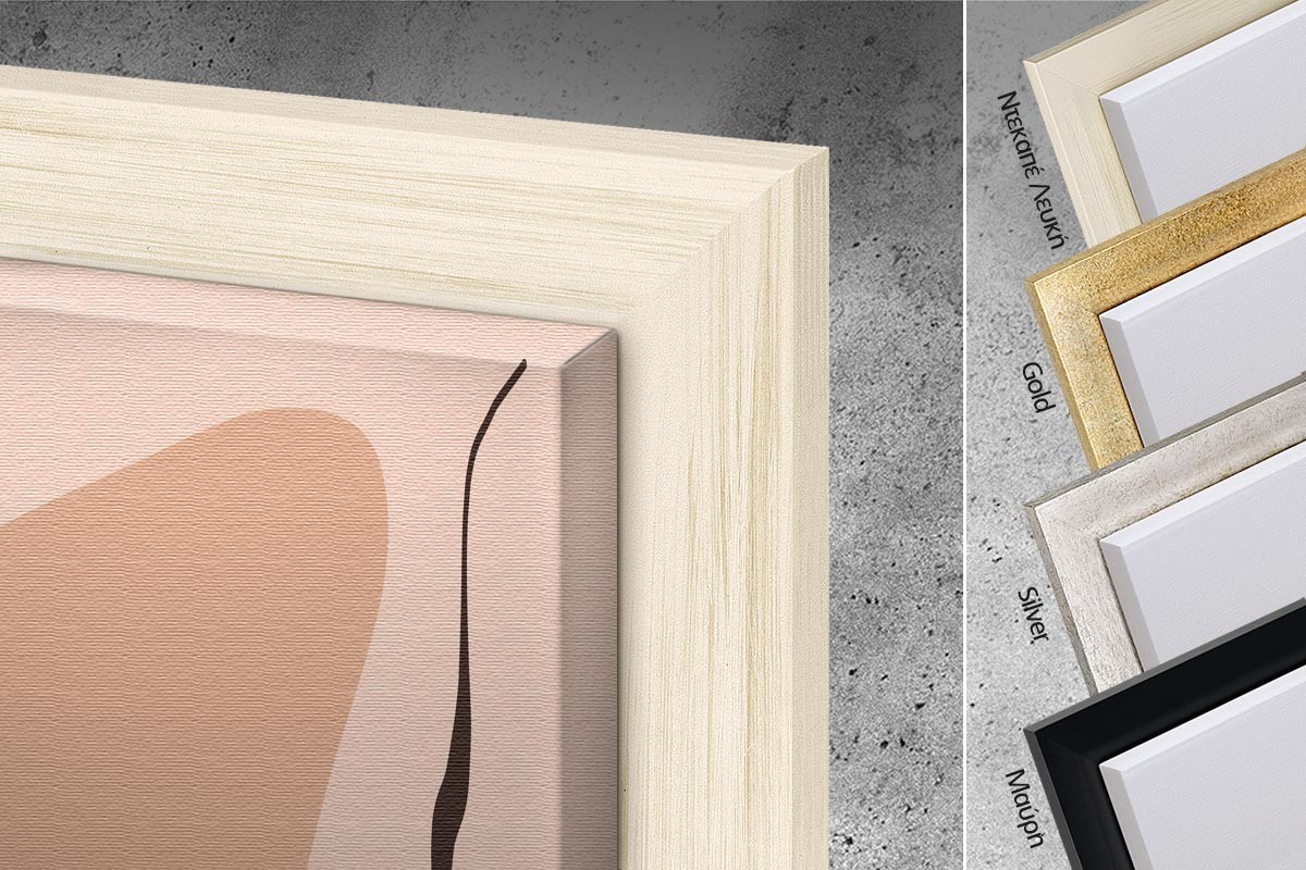 Μπορείτε να επιλέξετε ανάμεσα από 3 τύπους με 4 χρωματικές επιλογές ανά τύπο, Κλασική κορνίζα, κορνίζα Σκοτία και κορνίζα Πλάτη.