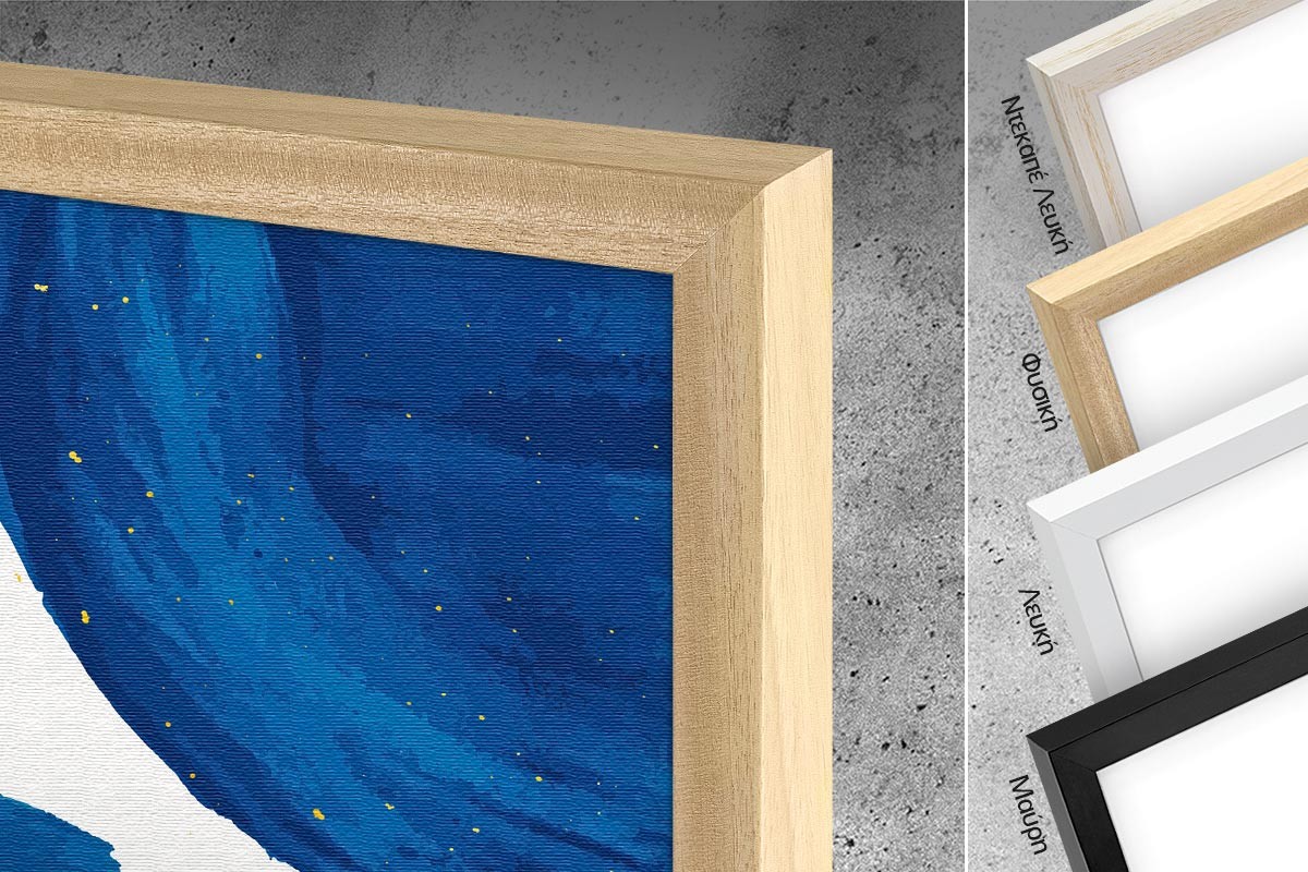 Όλες μας οι κορνίζες είναι ξύλινες χειροποίητες και ετοιμάζονται κατά παραγγελία σε άψογη συναρμογή με τον πίνακα σας!