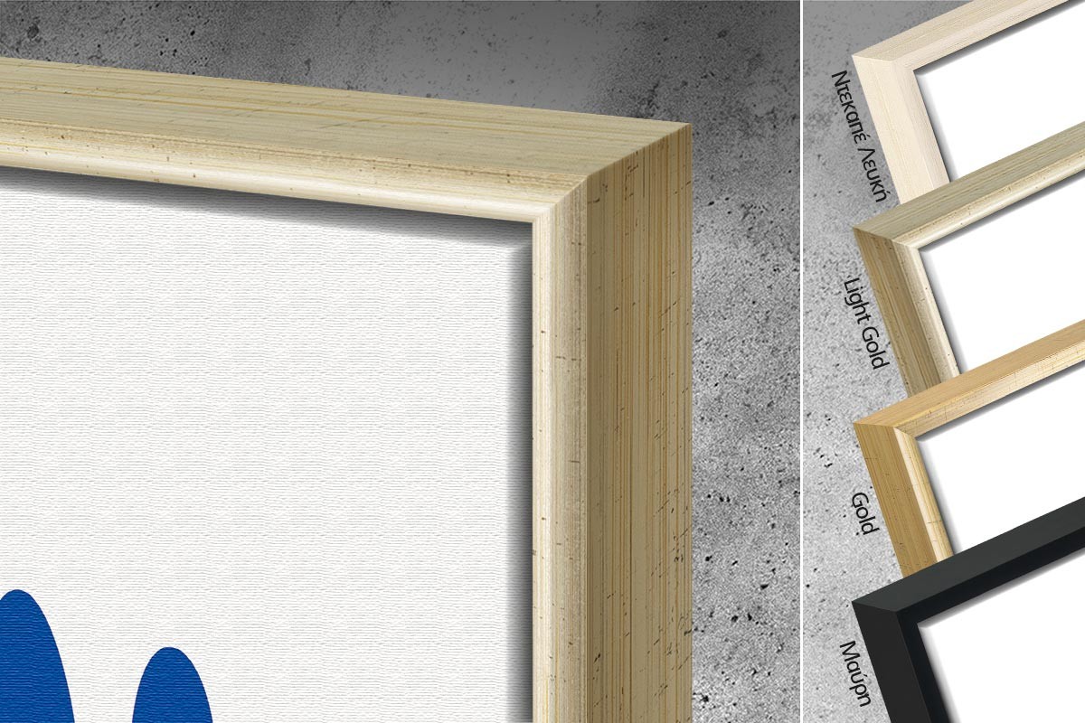 Μπορείτε να επιλέξετε ανάμεσα από 3 τύπους με 4 χρωματικές επιλογές ανά τύπο, Κλασική κορνίζα, κορνίζα Σκοτία και κορνίζα Πλάτη.