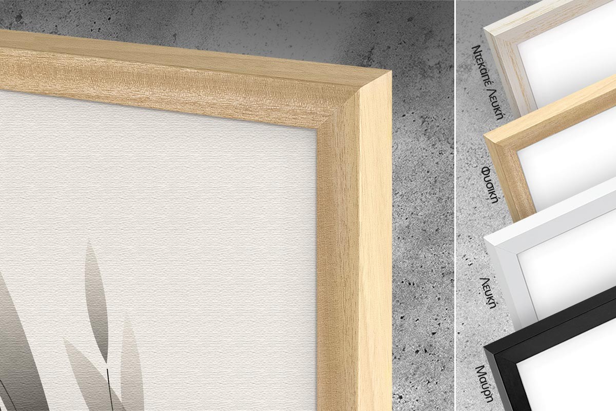 Μπορείτε να επιλέξετε ανάμεσα από 3 τύπους με 4 χρωματικές επιλογές ανά τύπο, Κλασική κορνίζα, κορνίζα Σκοτία και κορνίζα Πλάτη.