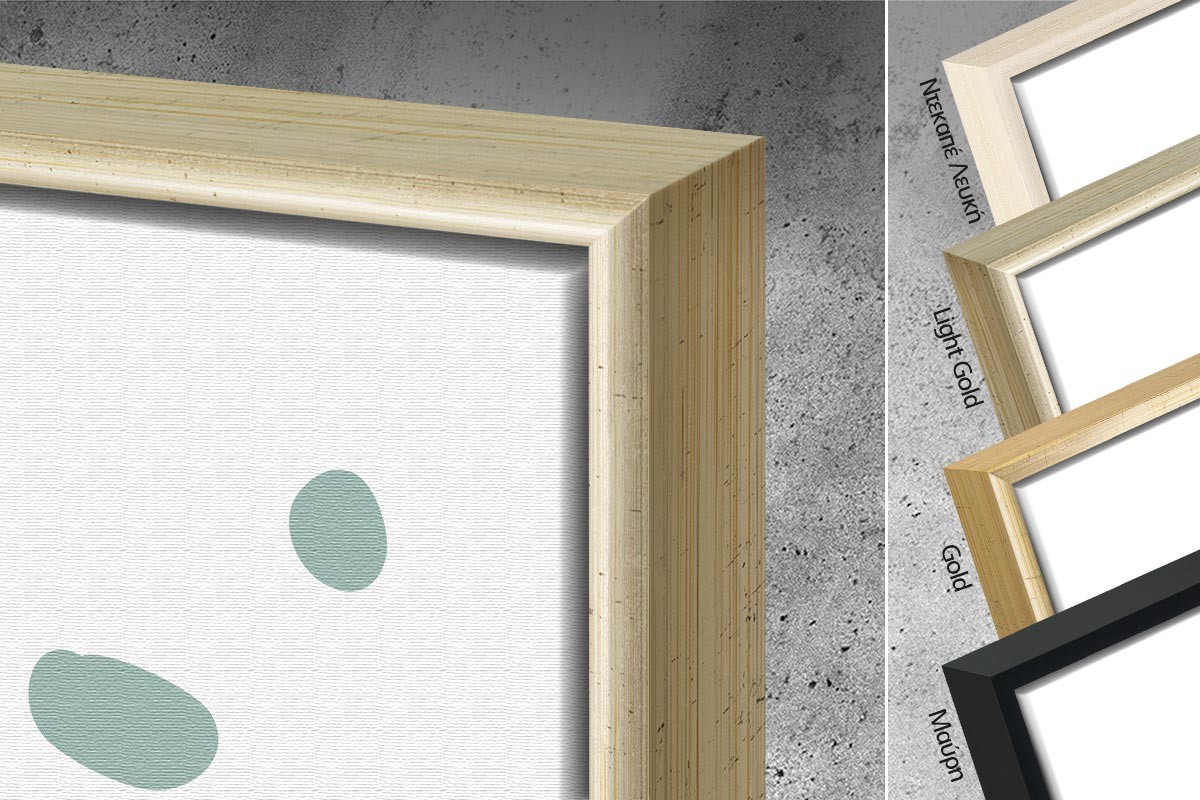 Μπορείτε να επιλέξετε ανάμεσα από 3 τύπους με 4 χρωματικές επιλογές ανά τύπο, Κλασική κορνίζα, κορνίζα Σκοτία και κορνίζα Πλάτη.