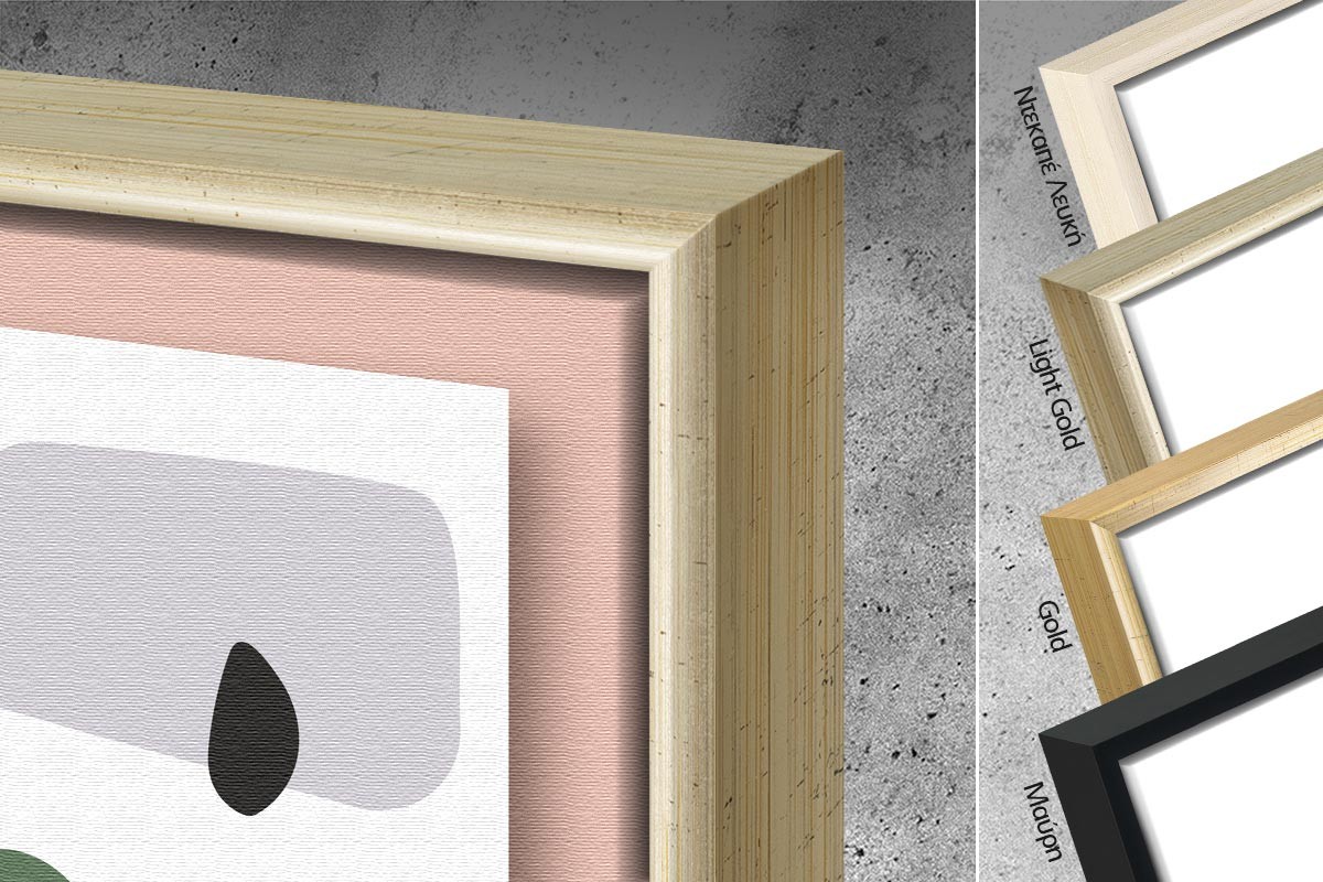 Μπορείτε να επιλέξετε ανάμεσα από 3 τύπους με 4 χρωματικές επιλογές ανά τύπο, Κλασική κορνίζα, κορνίζα Σκοτία και κορνίζα Πλάτη.