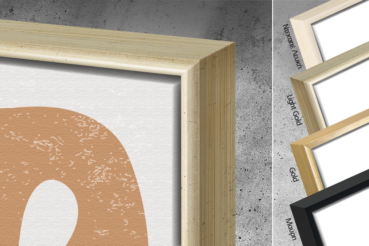Μπορείτε να επιλέξετε ανάμεσα από 3 τύπους με 4 χρωματικές επιλογές ανά τύπο, Κλασική κορνίζα, κορνίζα Σκοτία και κορνίζα Πλάτη.