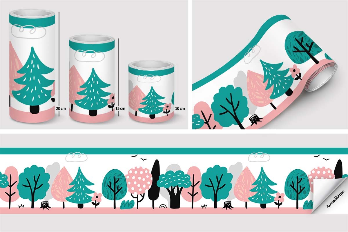 - Αυτοκόλλητη μπορντούρα μπορεί να εφαρμοστεί σε οποιαδήποτε λεία, καθαρή και στεγνή επιφάνεια τοίχων, πλακιδίων, γυαλιού, επίπλων, ντουλαπών κ.λπ.