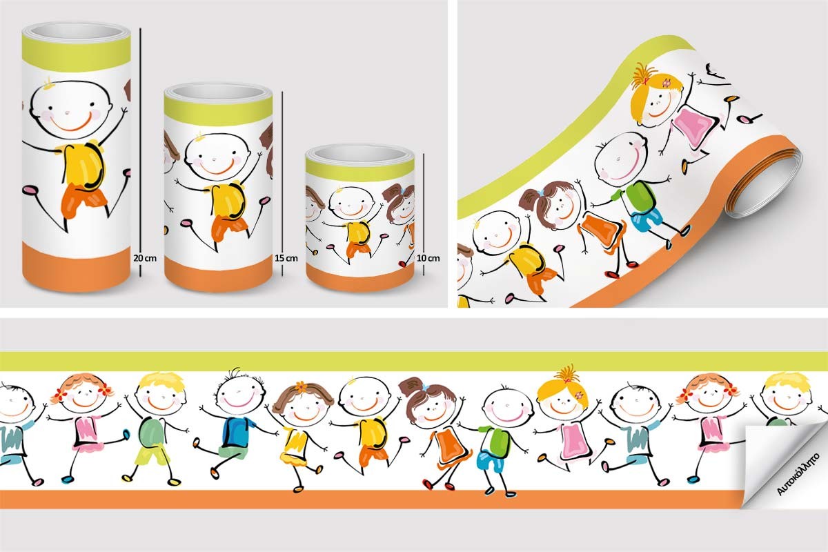 - Αυτοκόλλητη μπορντούρα μπορεί να εφαρμοστεί σε οποιαδήποτε λεία, καθαρή και στεγνή επιφάνεια τοίχων, πλακιδίων, γυαλιού, επίπλων, ντουλαπών κ.λπ.