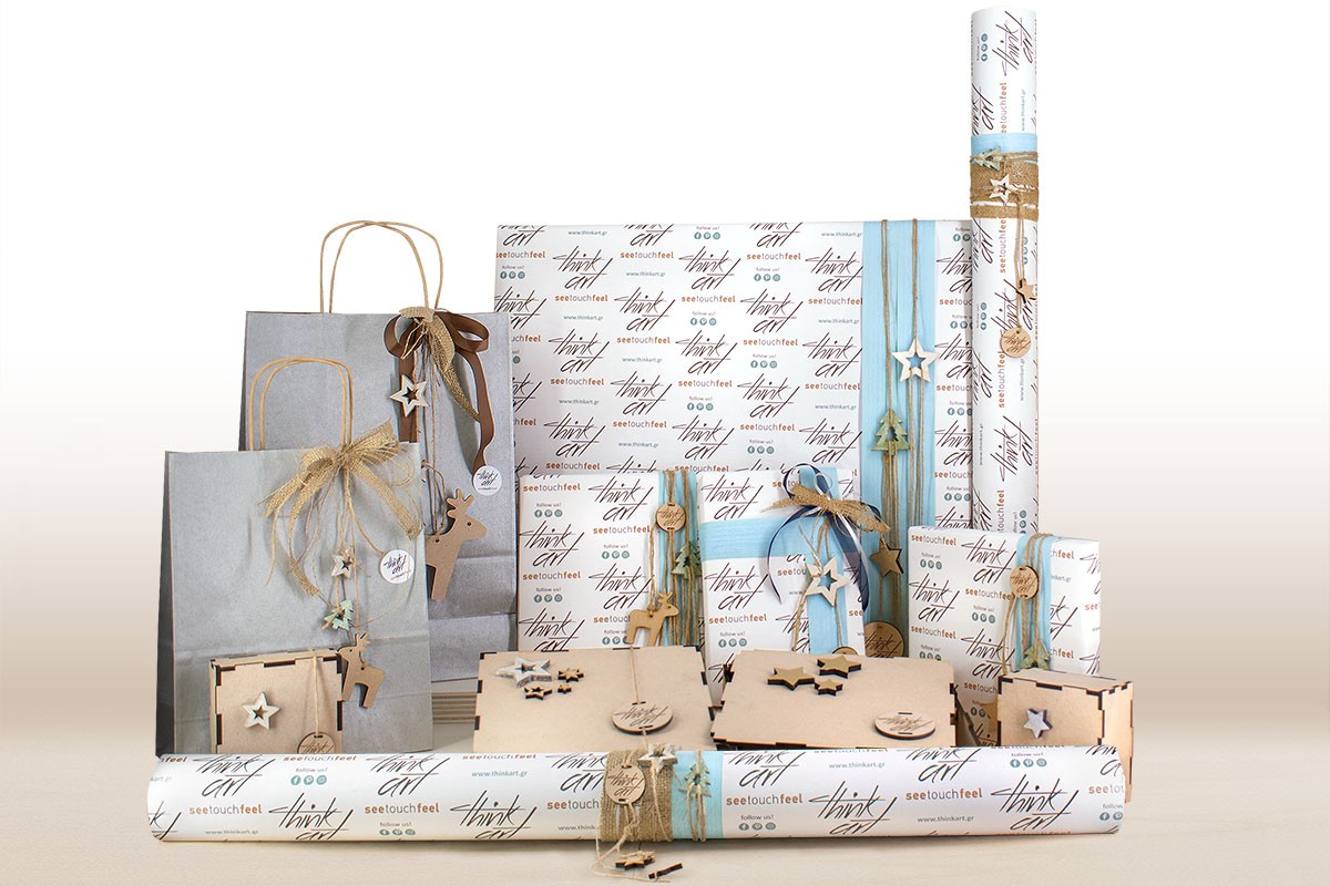 Επιλέξτε μία απο τις μοναδικές χριστουγεννιάτικες συσκευασίες δώρου που δημουργήσαμε για σας, με ξύλινα στολίδια και κορδέλες!