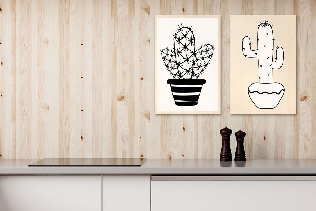 Στα Ξύλινα Πόστερ μας, θα βρείτε δύο τύπους φινιρίσματος: "Λευκό Φόντο" και "Φυσικό Φόντο".
